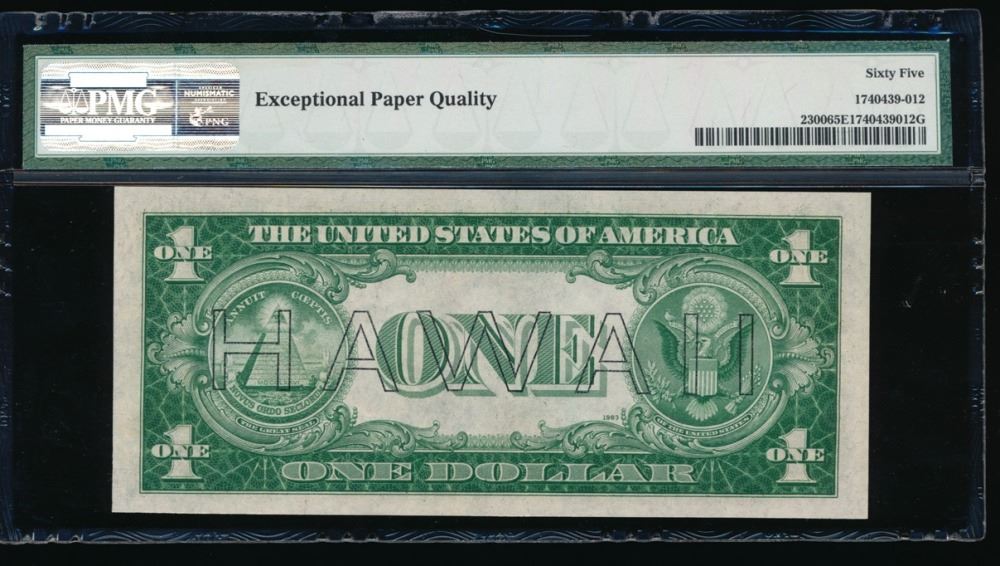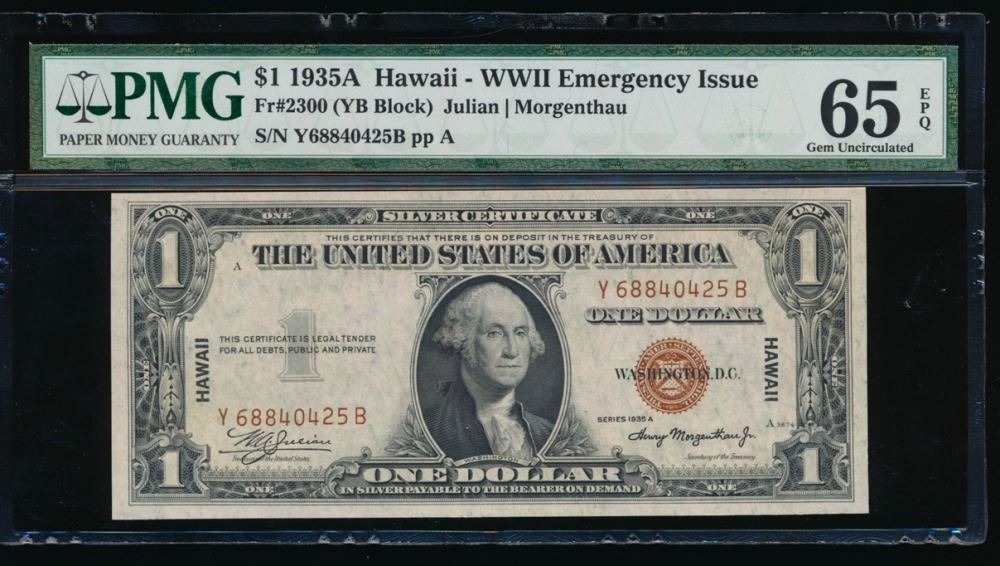 One 1935A $1 Hawaii WWII Emergency Silver Certificate PMG 65EPQ.