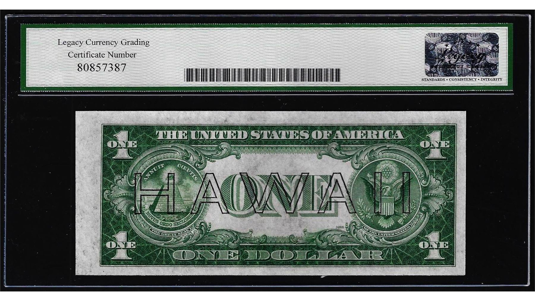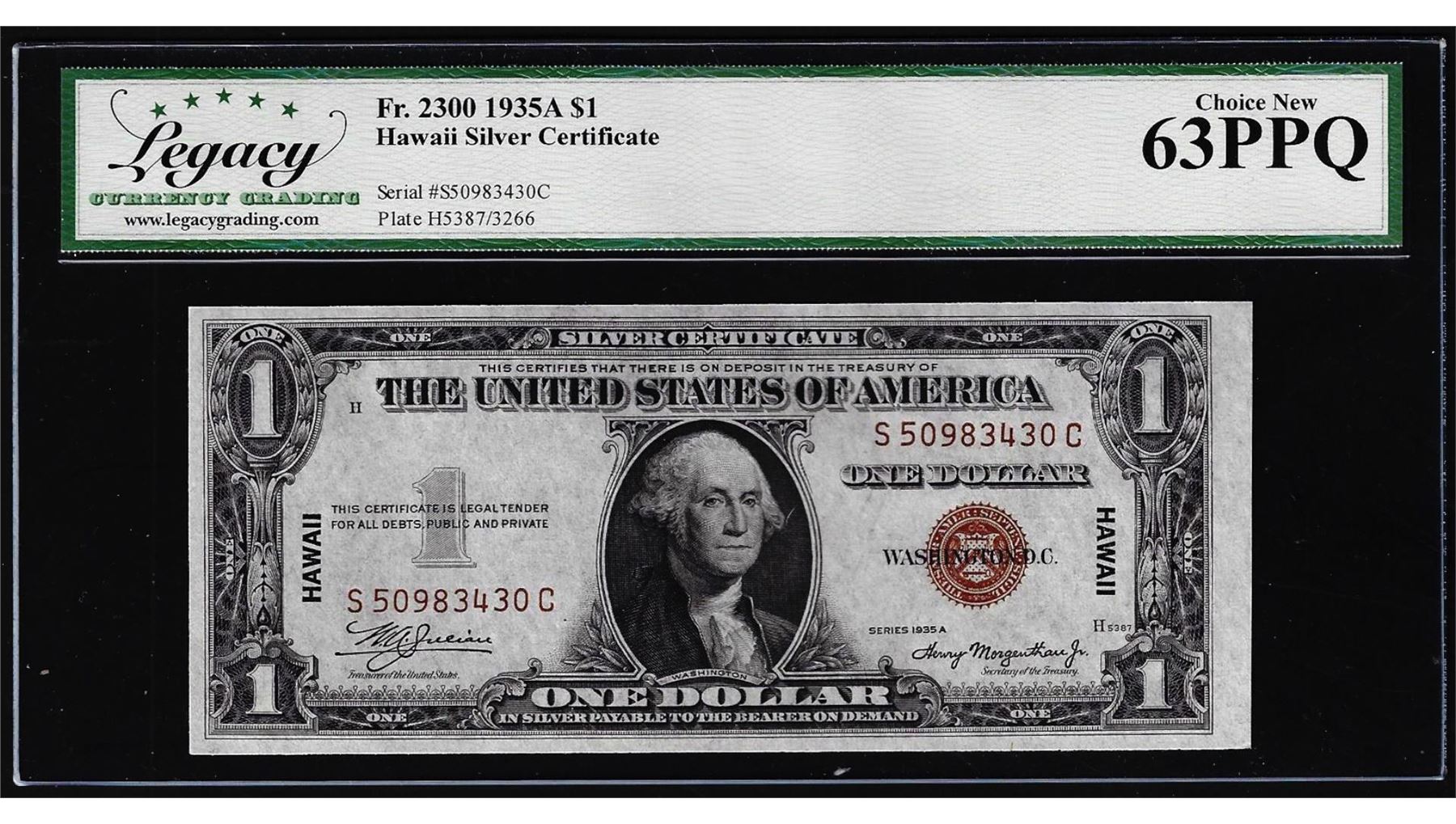 One 1935A $1 Hawaii WWII Silver Certificate Note Fr.2300 Legacy Choice New 63PPQ. Legacy Graded.