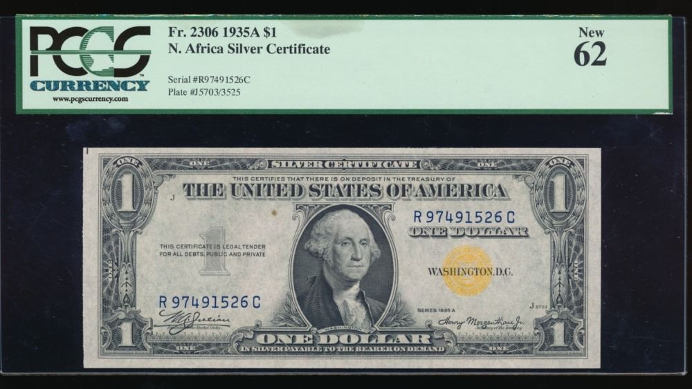 One 1935A $1 N Africa Silver Certificate PCGS 62.