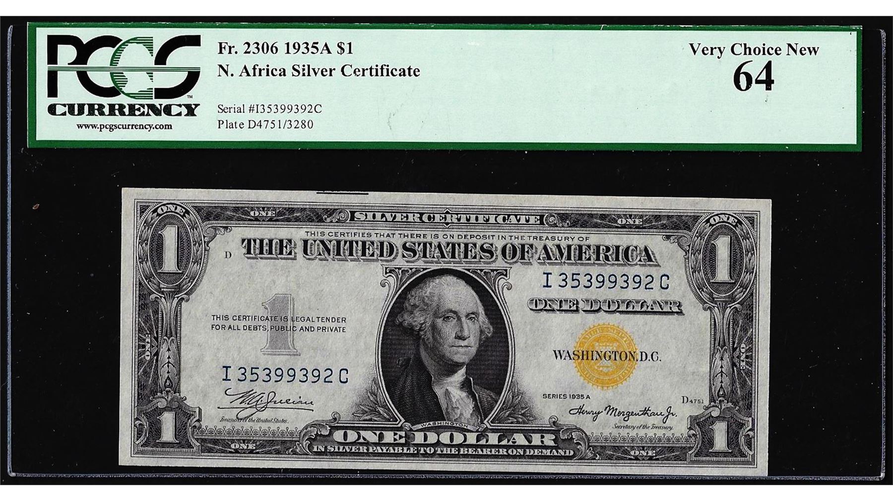 One 1935A $1 North Africa Silver Certificate WWII Emergency Note PCGS Very Choice New 64. PCGS Graded.