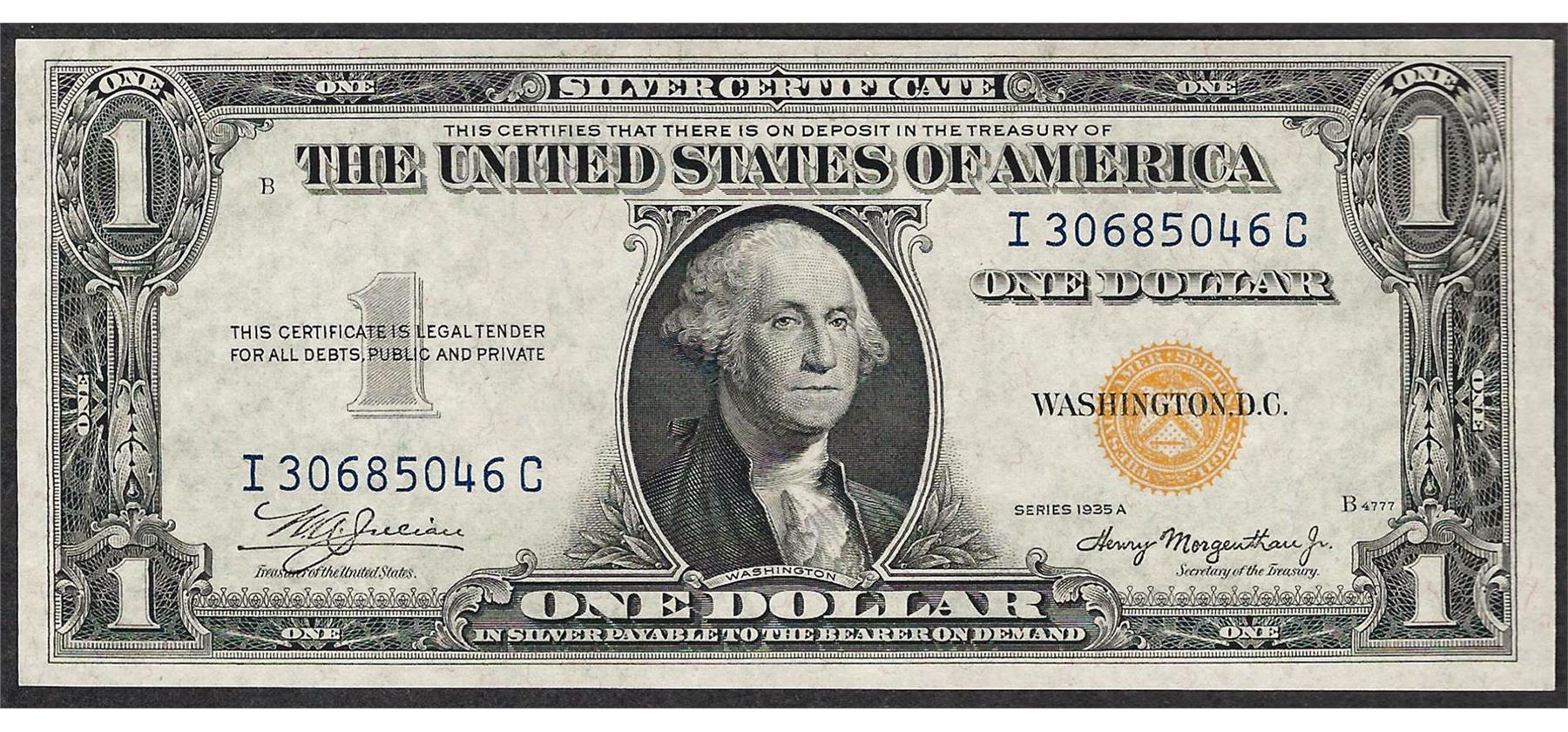 One 1935A $1 North Africa WWII Emergency Silver Certificate Note.