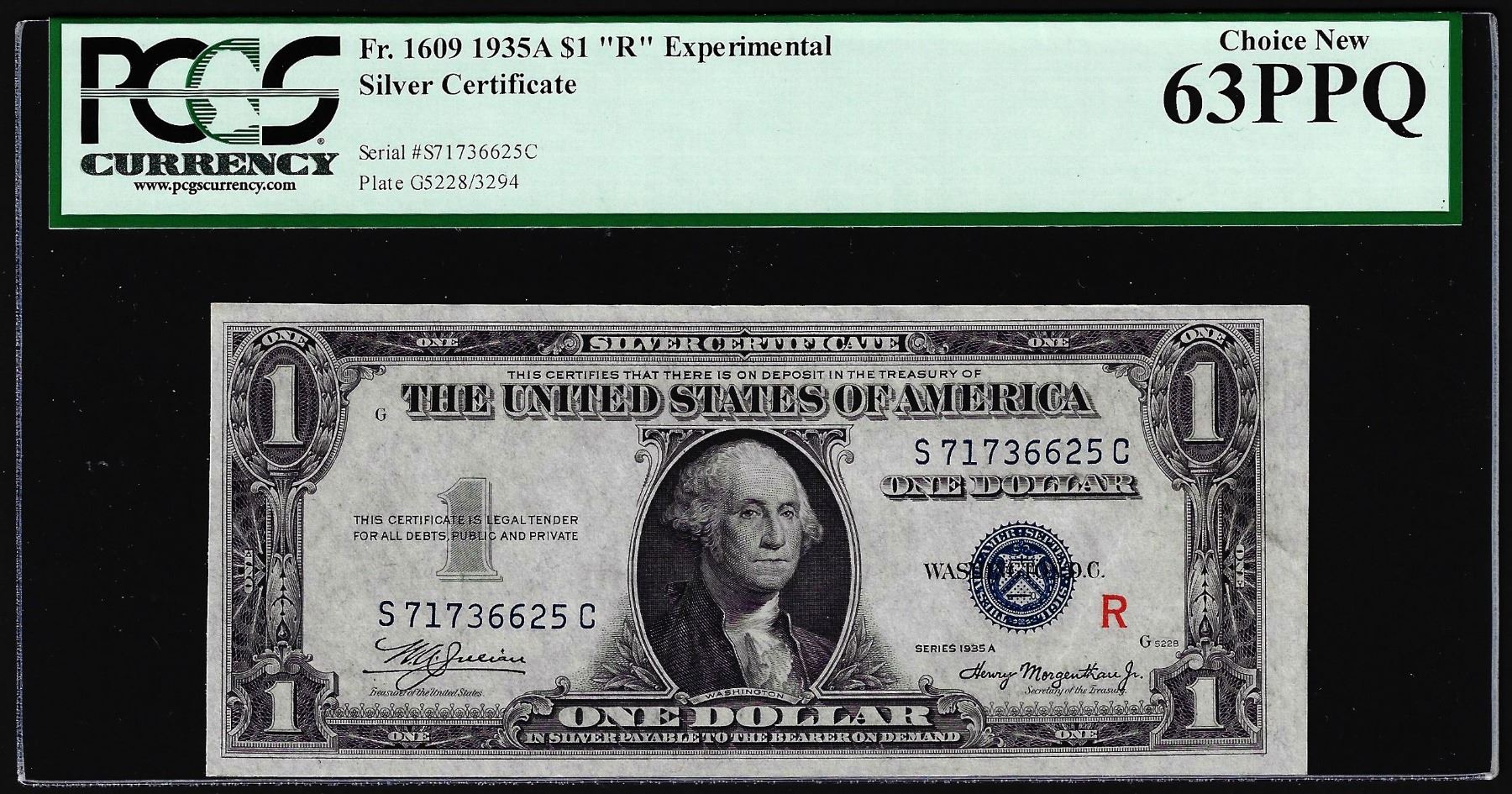 1935A $1 "R" Experimental Silver Certificate Notes Fr.1609 PCGS Choice New 63PPQ
