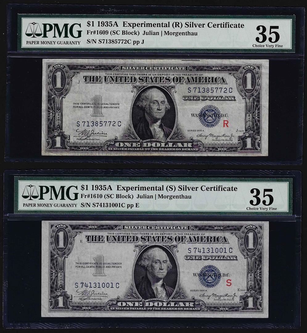 One 1935A $1 R & S Pair of Experimental Silver Certificate Notes.