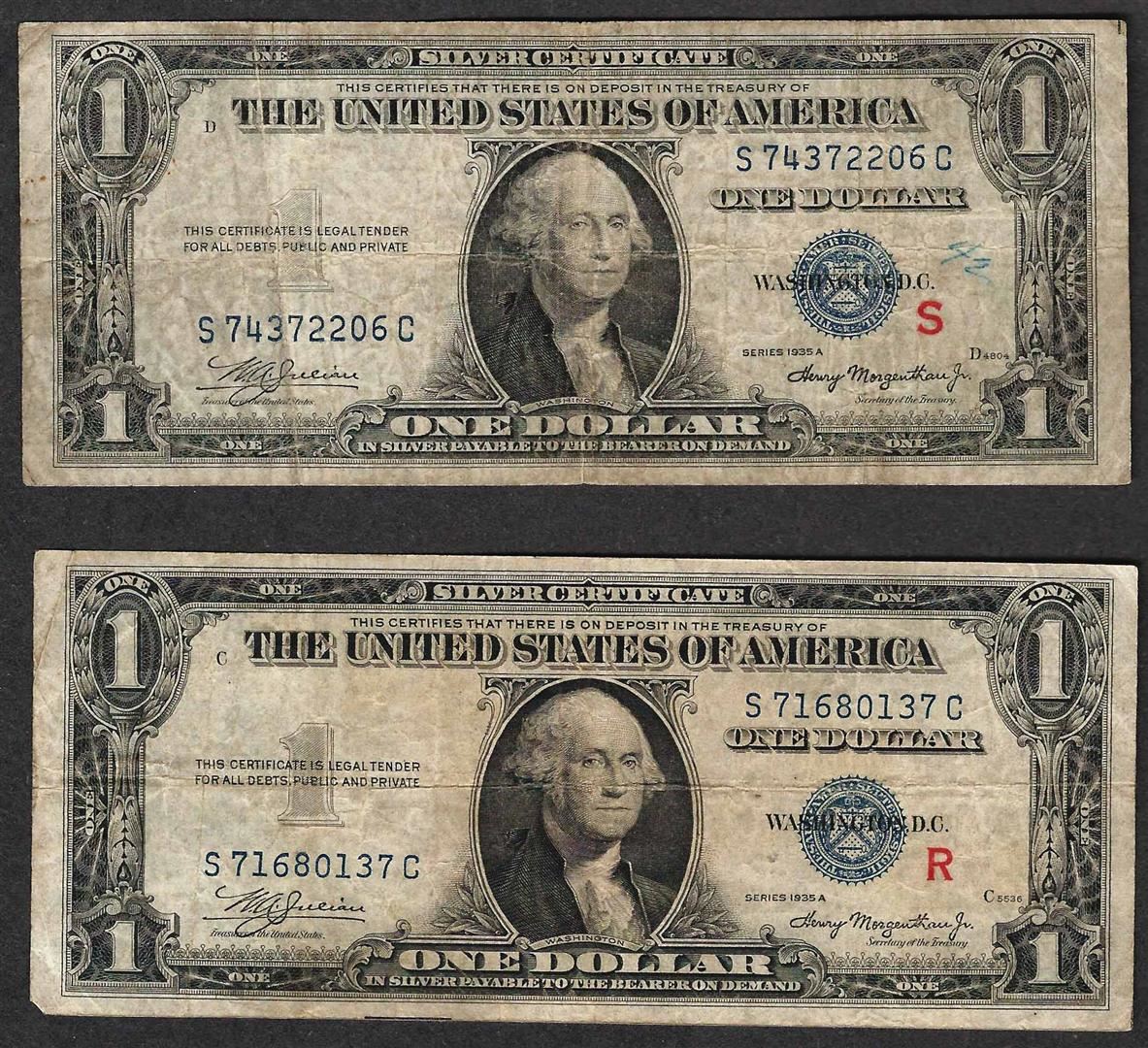 One 1935A $1 R & S Pair of Experimental Silver Certificate Notes.