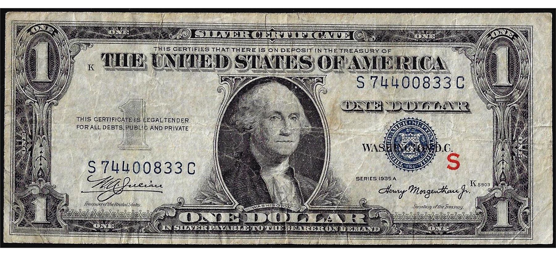 One 1935A $1 "S" Experimental Silver Certificate Note.