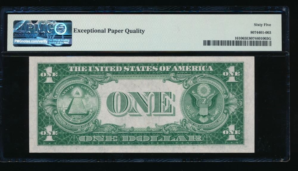 One 1935A $1 S Experimental Silver Certificate PMG 65EPQ.