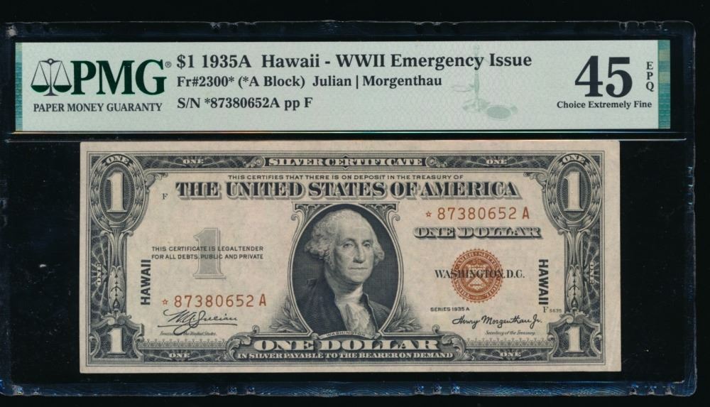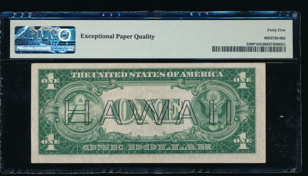 One 1935A $1 STAR Hawaii Silver Certificate PMG 45EPQ.
