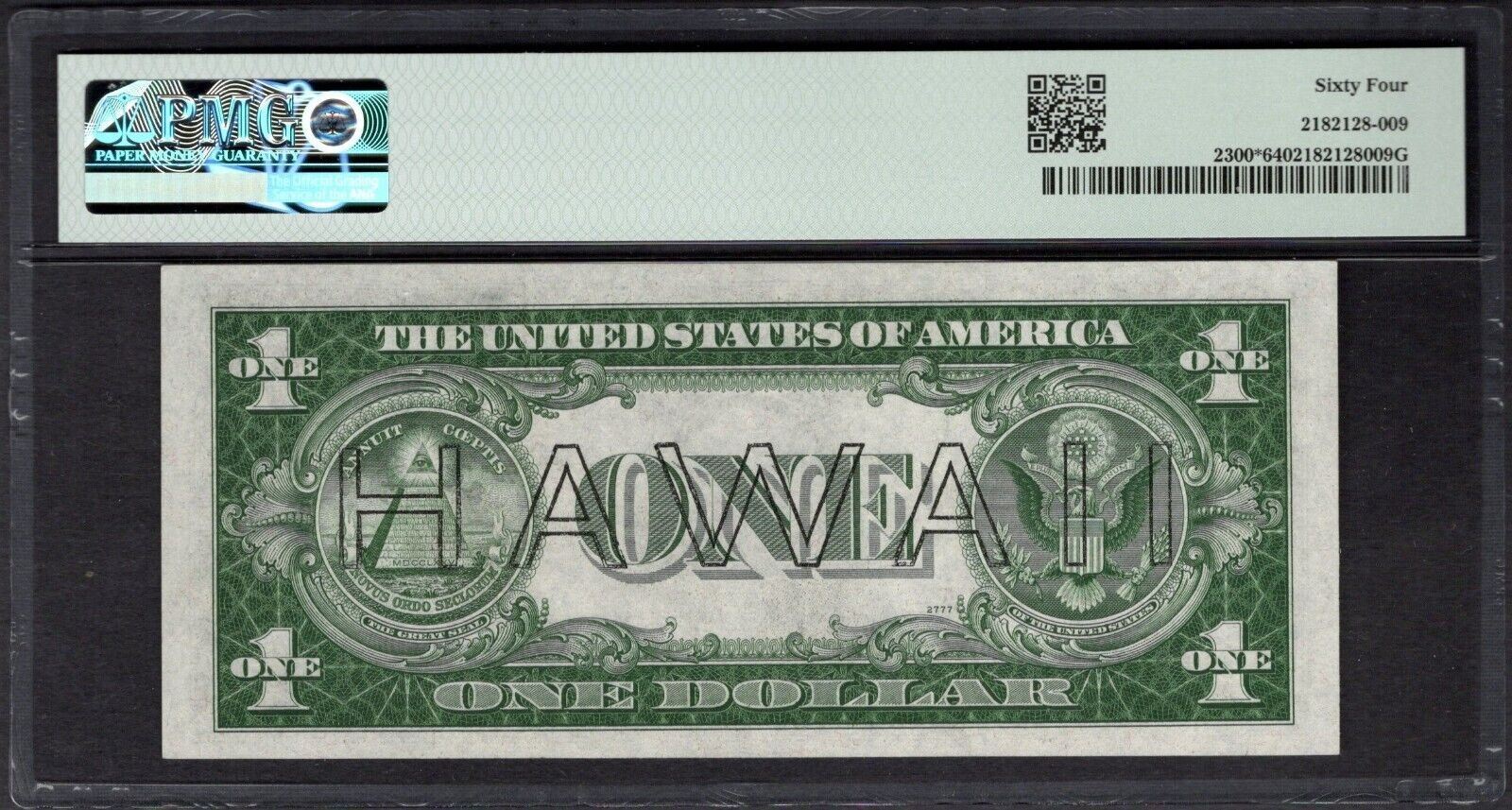 One 1935A $1 STAR Hawaii Silver Certificate PMG 64.