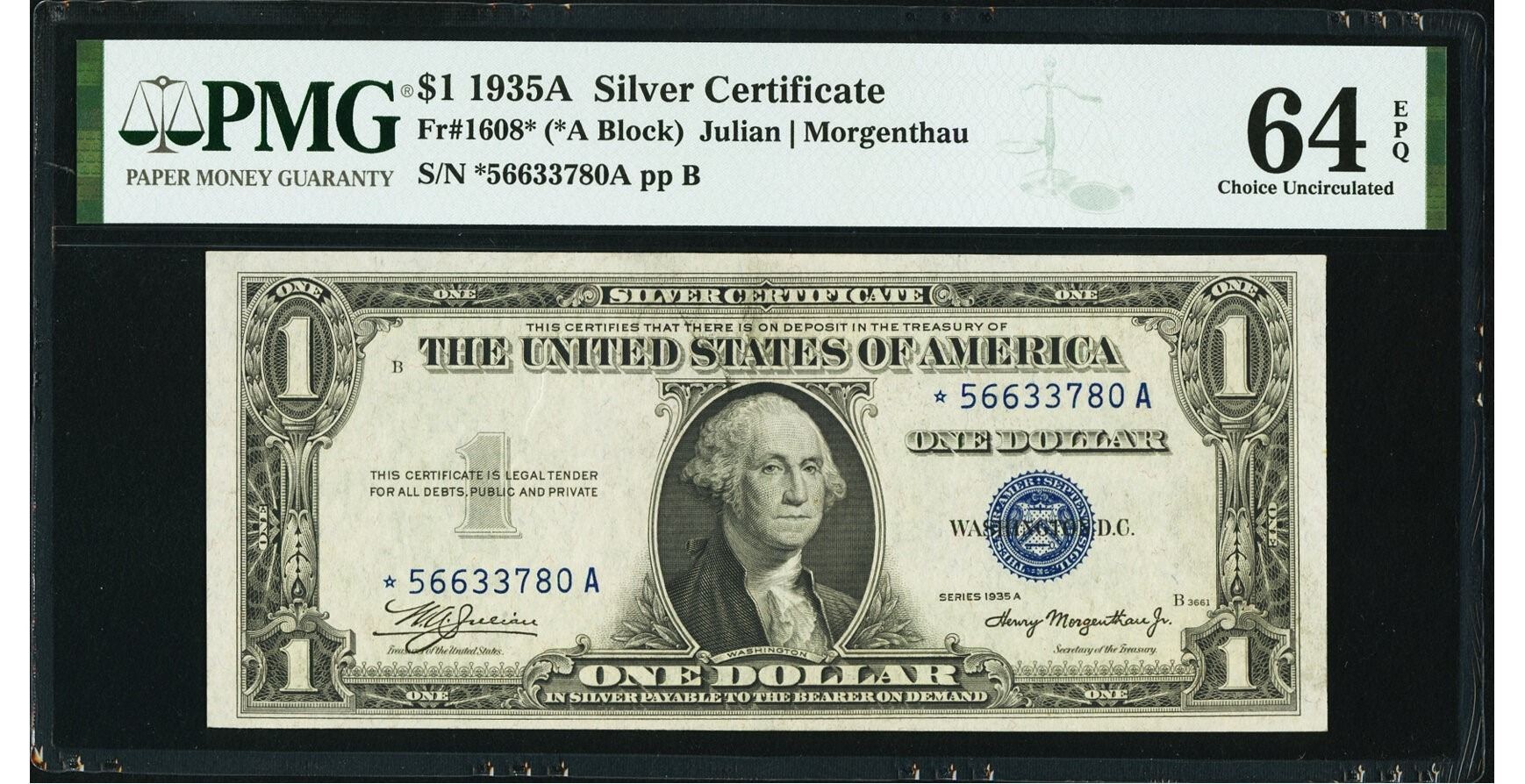 One 1935A $1 STAR Silver Certificate PMG 64EPQ.