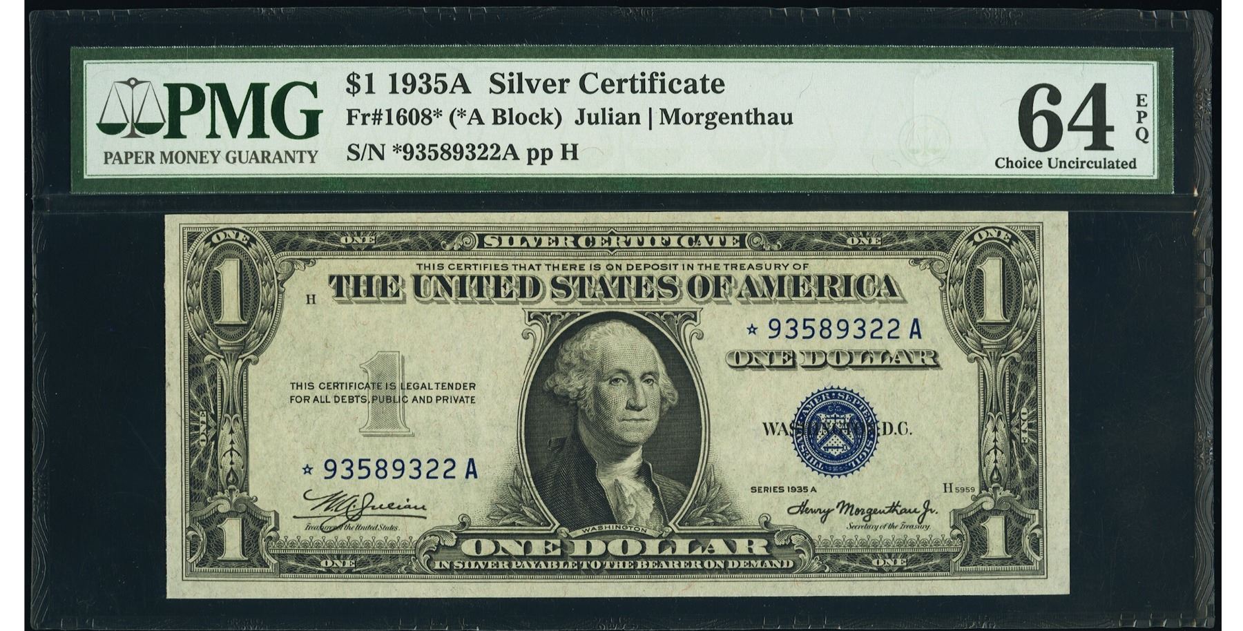One 1935A $1 STAR Silver Certificate PMG 64EPQ.