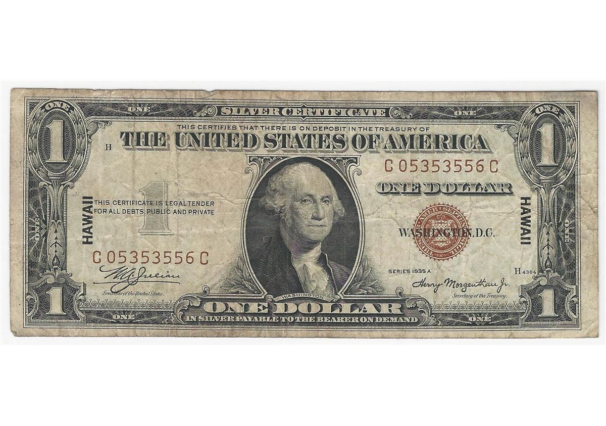 One 1935A $1 Silver Certificate Emergency Hawaii Note.