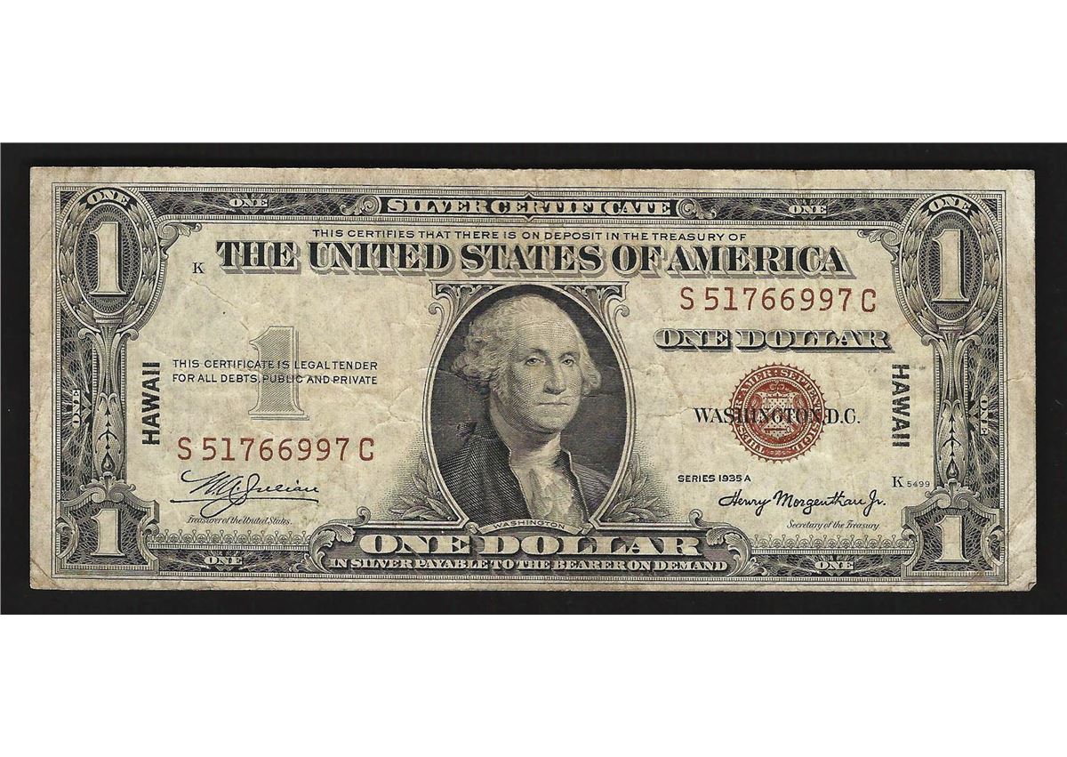 One 1935A $1 Silver Certificate Emergency Hawaii Note.