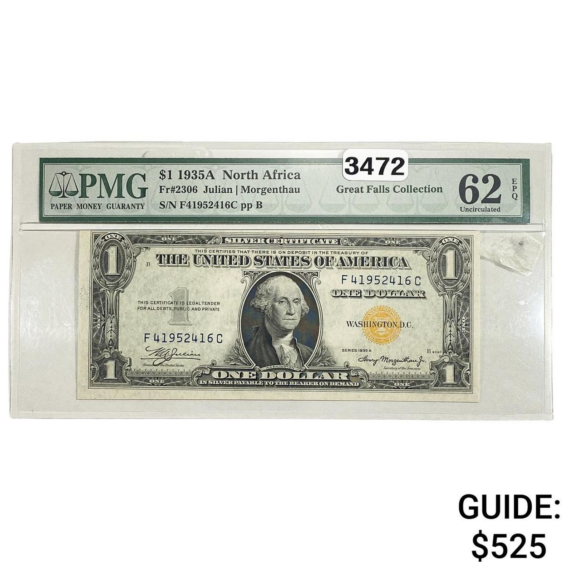 1935A $1 Silver Certificate Gold Seal PMG UNC 62