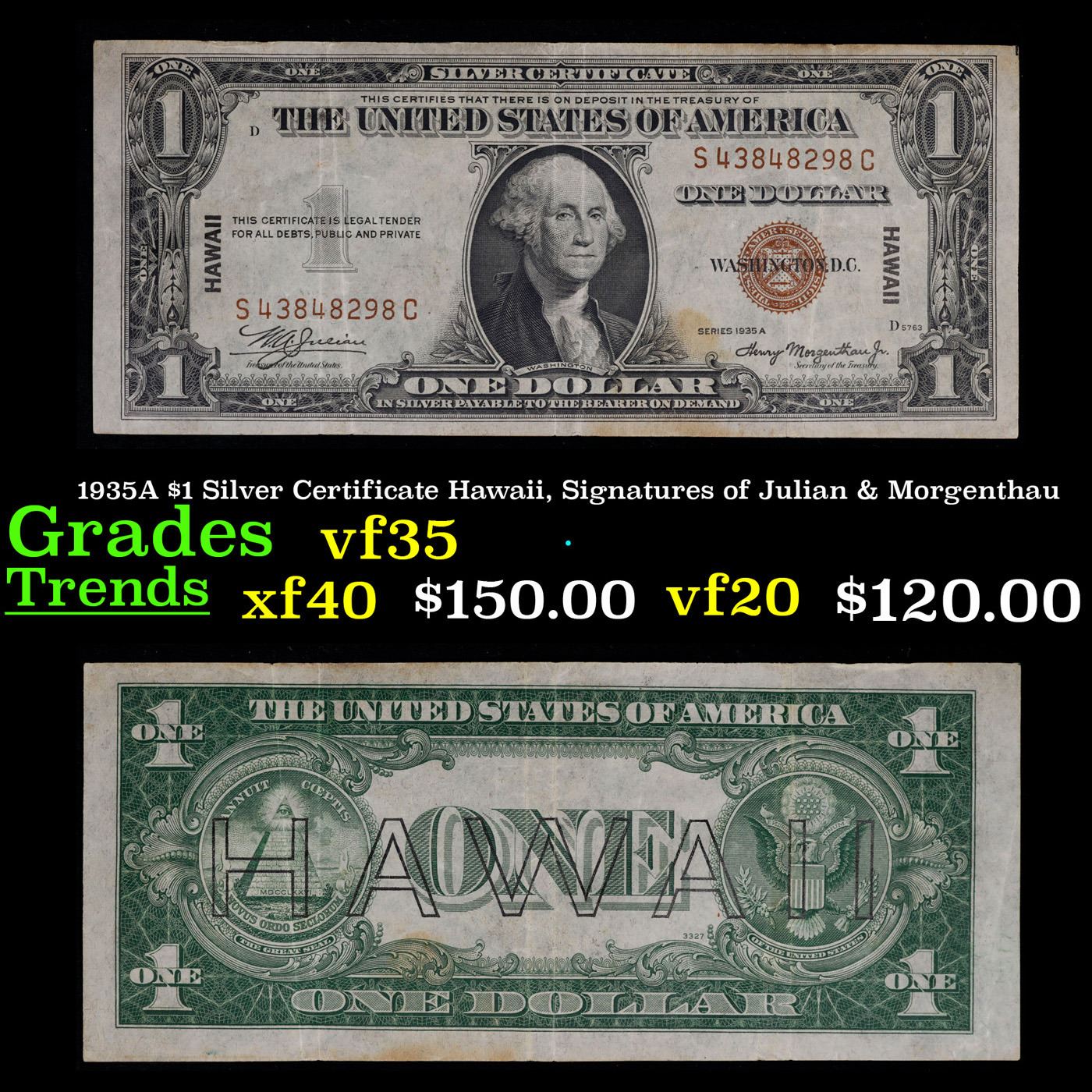 1935A $1 Silver Certificate Hawaii, Signatures of Julian & Morgenthau Grades vf++