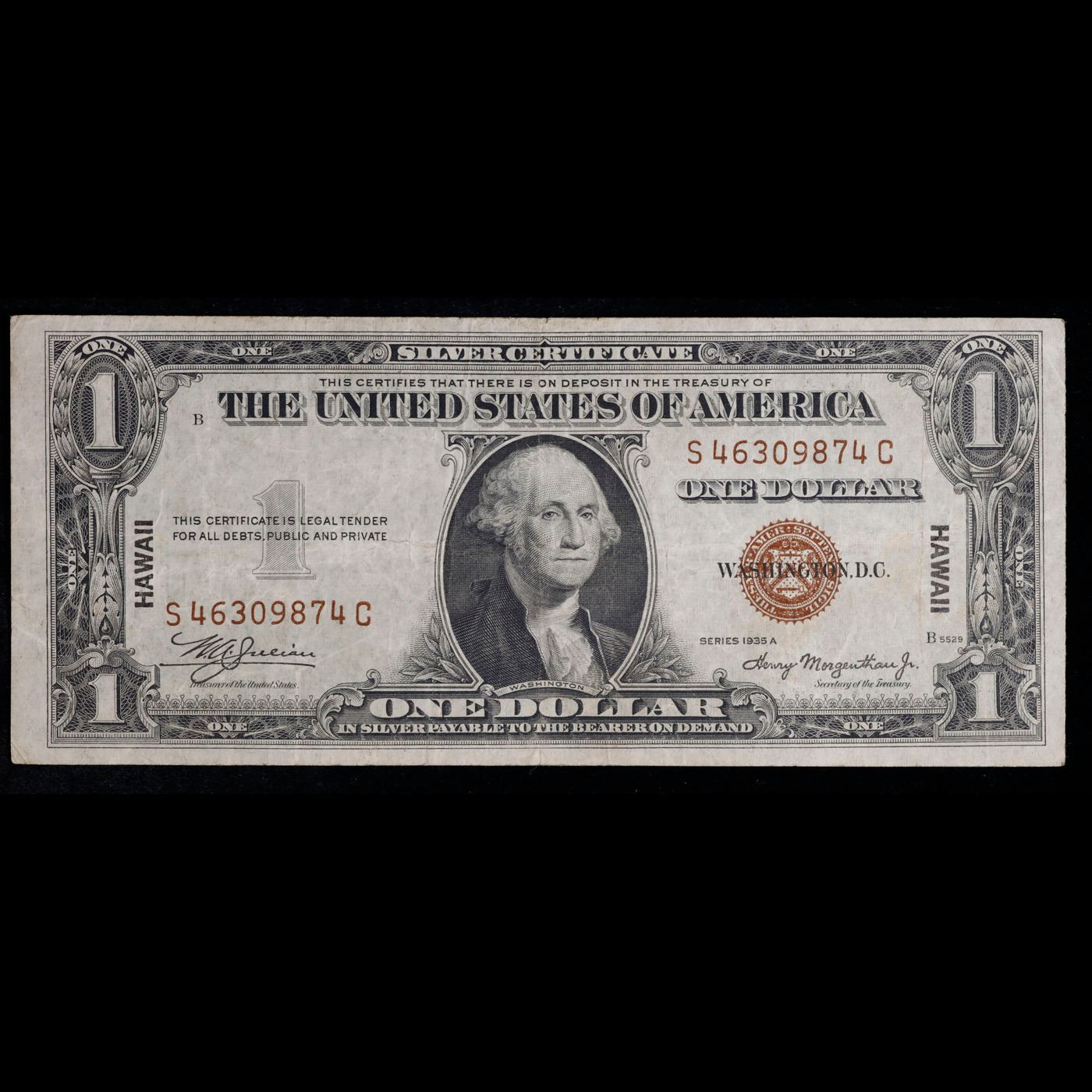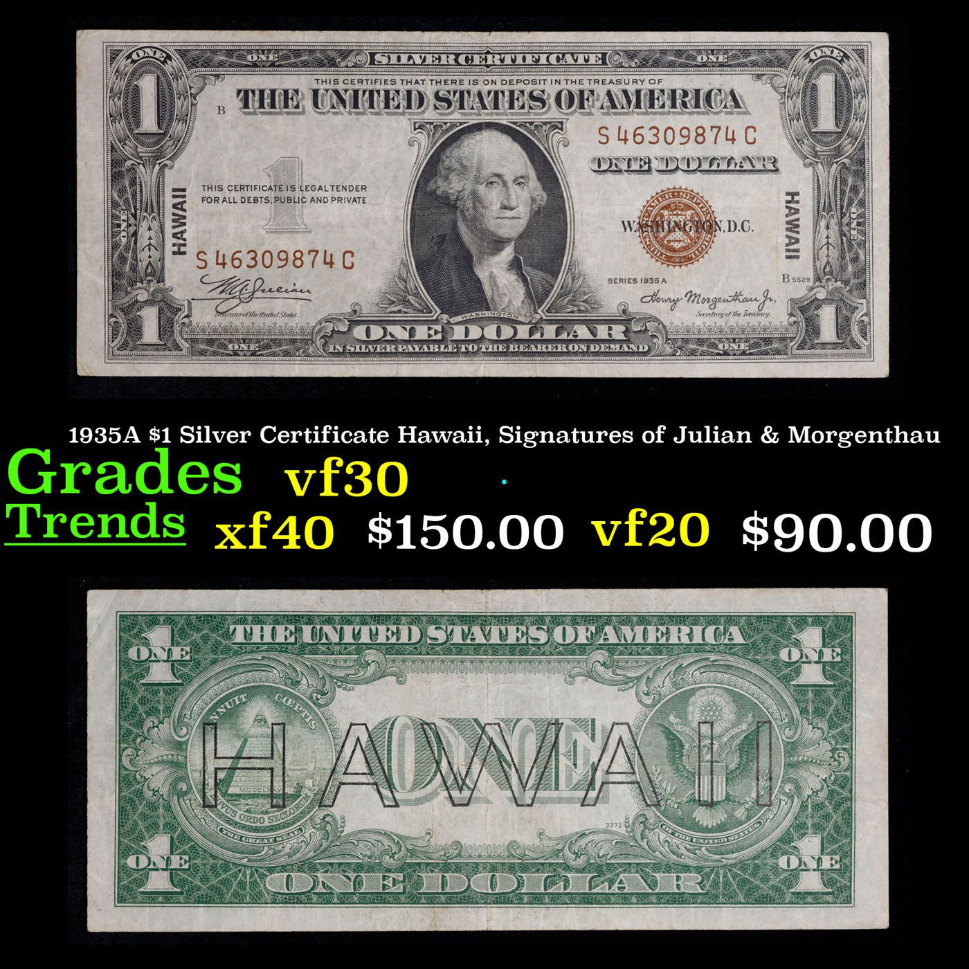 1935A $1 Silver Certificate Hawaii, Signatures of Julian & Morgenthau Grades vf++