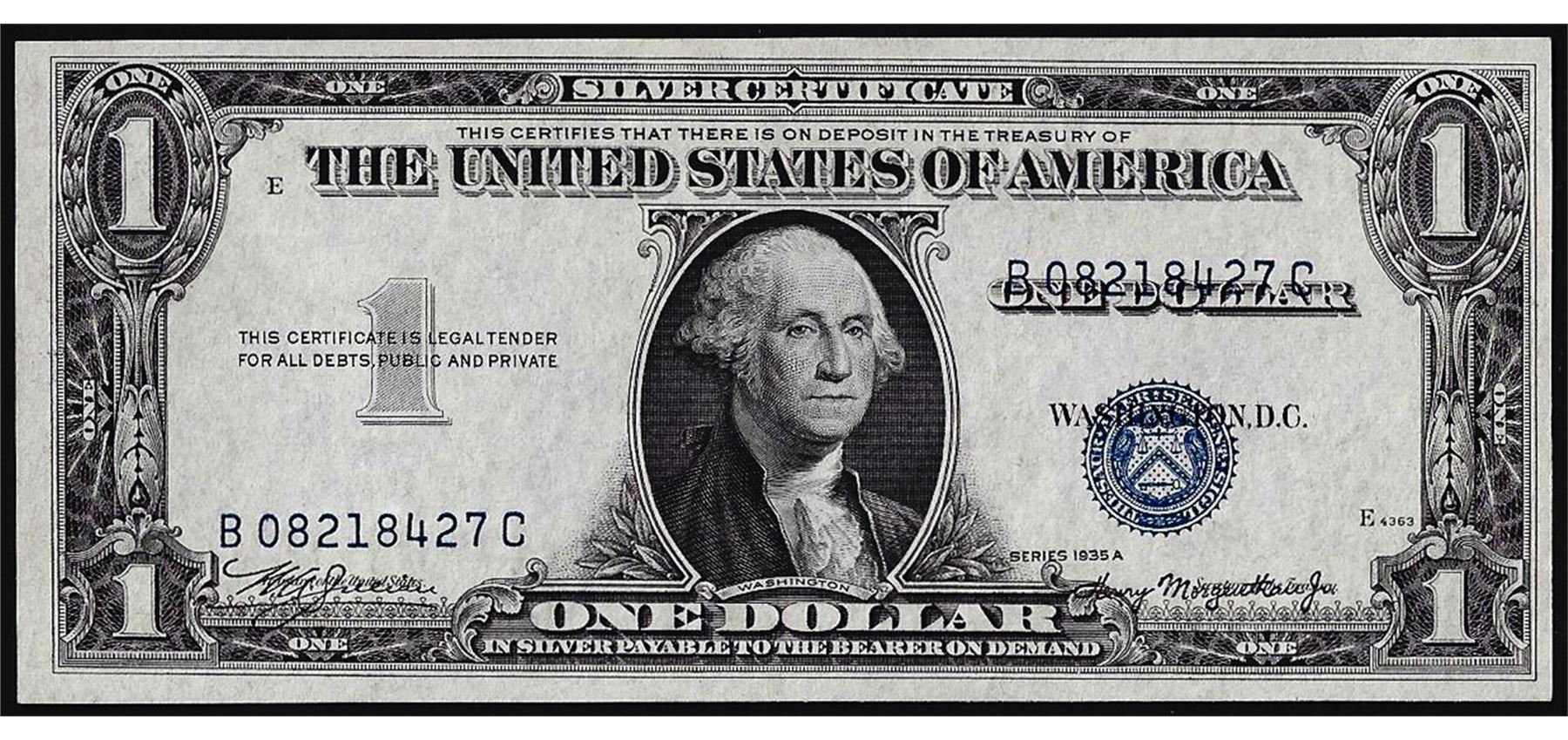 One 1935A $1 Silver Certificate Note Misaligned Overprint ERROR.