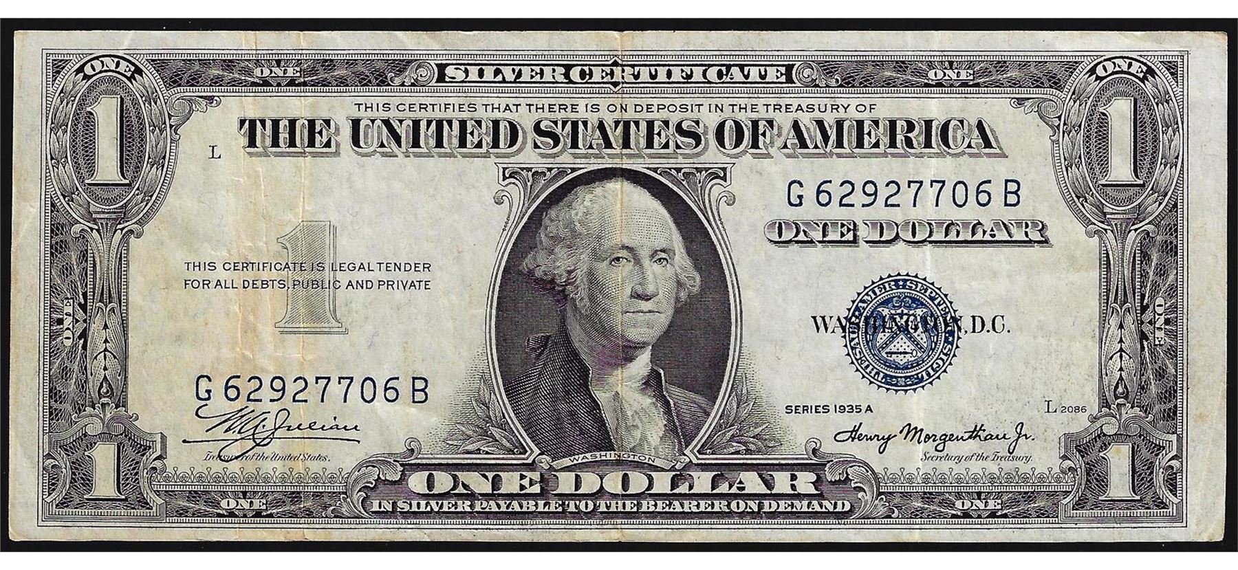 One 1935A $1 Silver Certificate Note Misaligned Reverse ERROR.
