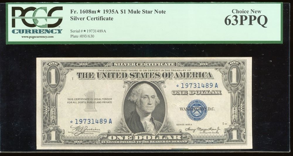 One 1935A $1 Silver Certificate PCGS 63PPQ.