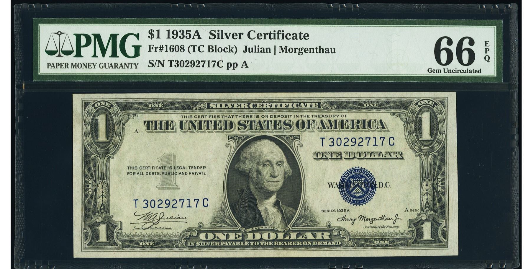 One 1935A $1 Silver Certificate PMG 66EPQ.