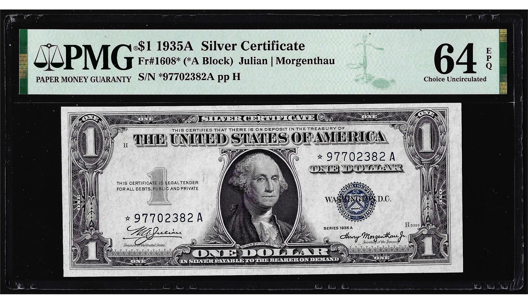 One 1935A $1 Silver Certificate STAR Note Fr.1608* PMG Choice Uncirculated 64EPQ.