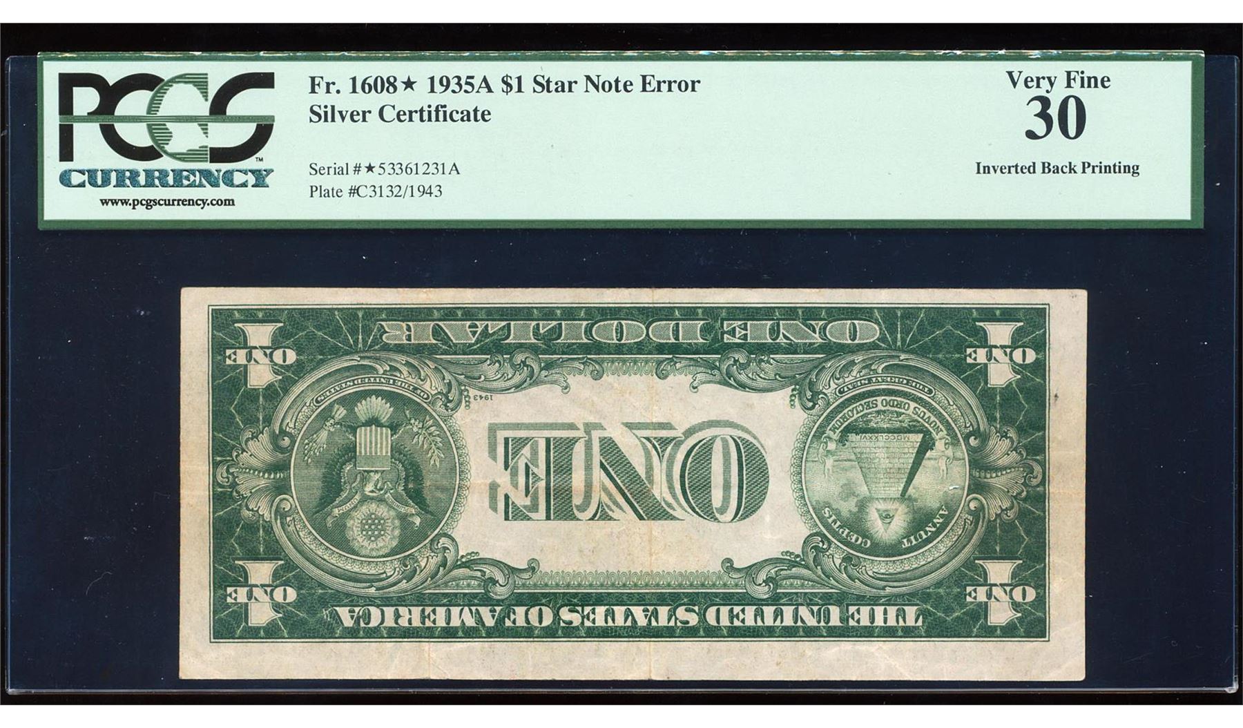 One 1935A $1 Silver Certificate STAR Note Inverted Back Printing ERROR PCGS Very Fine 30. PCGS Graded.