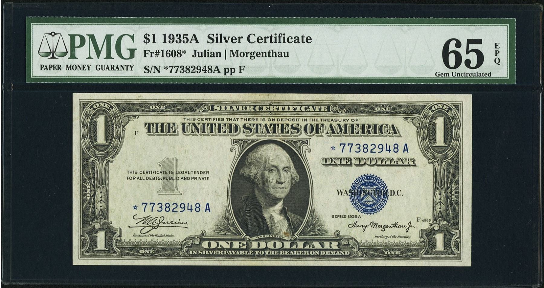 One 1935A $1 Silver Certificate STAR Note PMG 65EPQ.