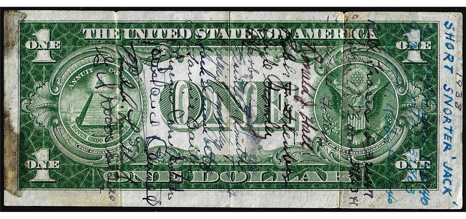 One 1935A $1 Silver Certificate Short Snorter Note.