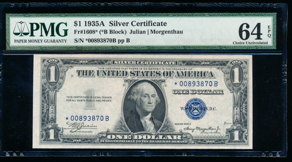 One 1935A $1 Silver Certificate Star Note PMG 64EPQ.