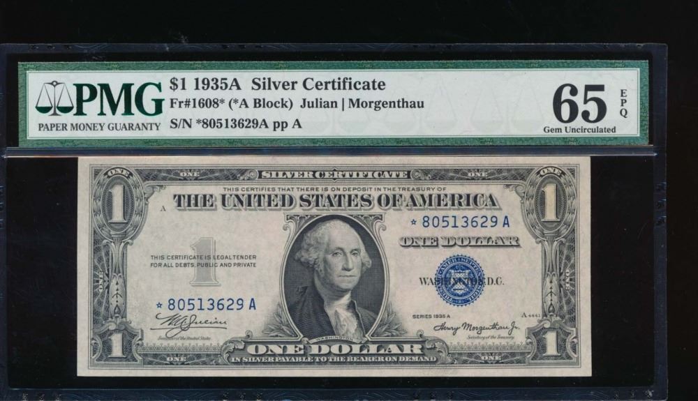 One 1935A $1 Silver Certificate Star Note PMG 65EPQ.