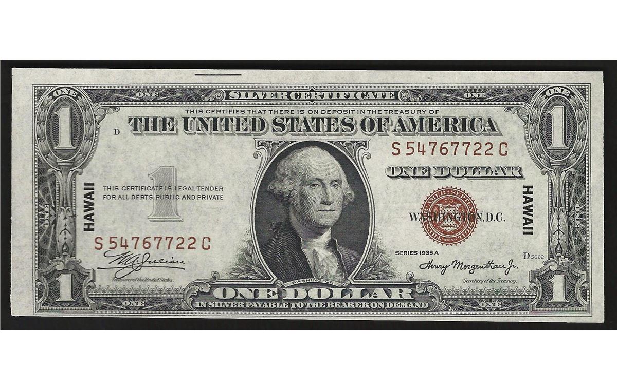 One 1935A $1 Silver Certificate WWII Emergency Hawaii Note.