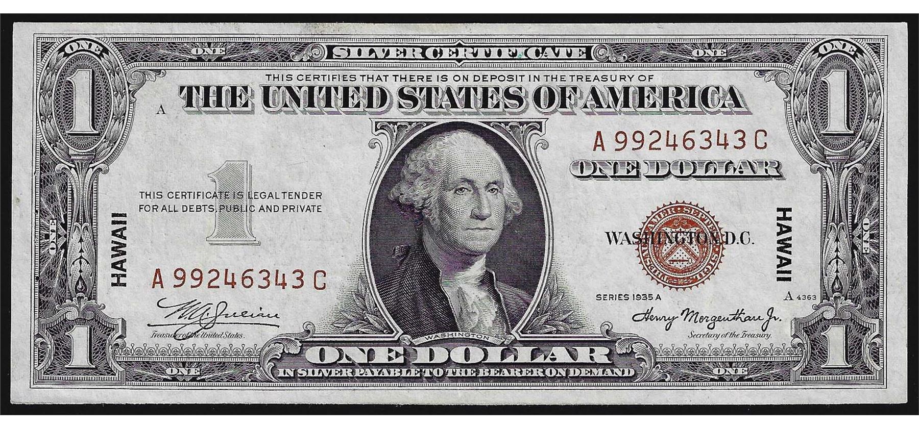 One 1935A $1 Silver Certificate WWII Emergency Hawaii Note.