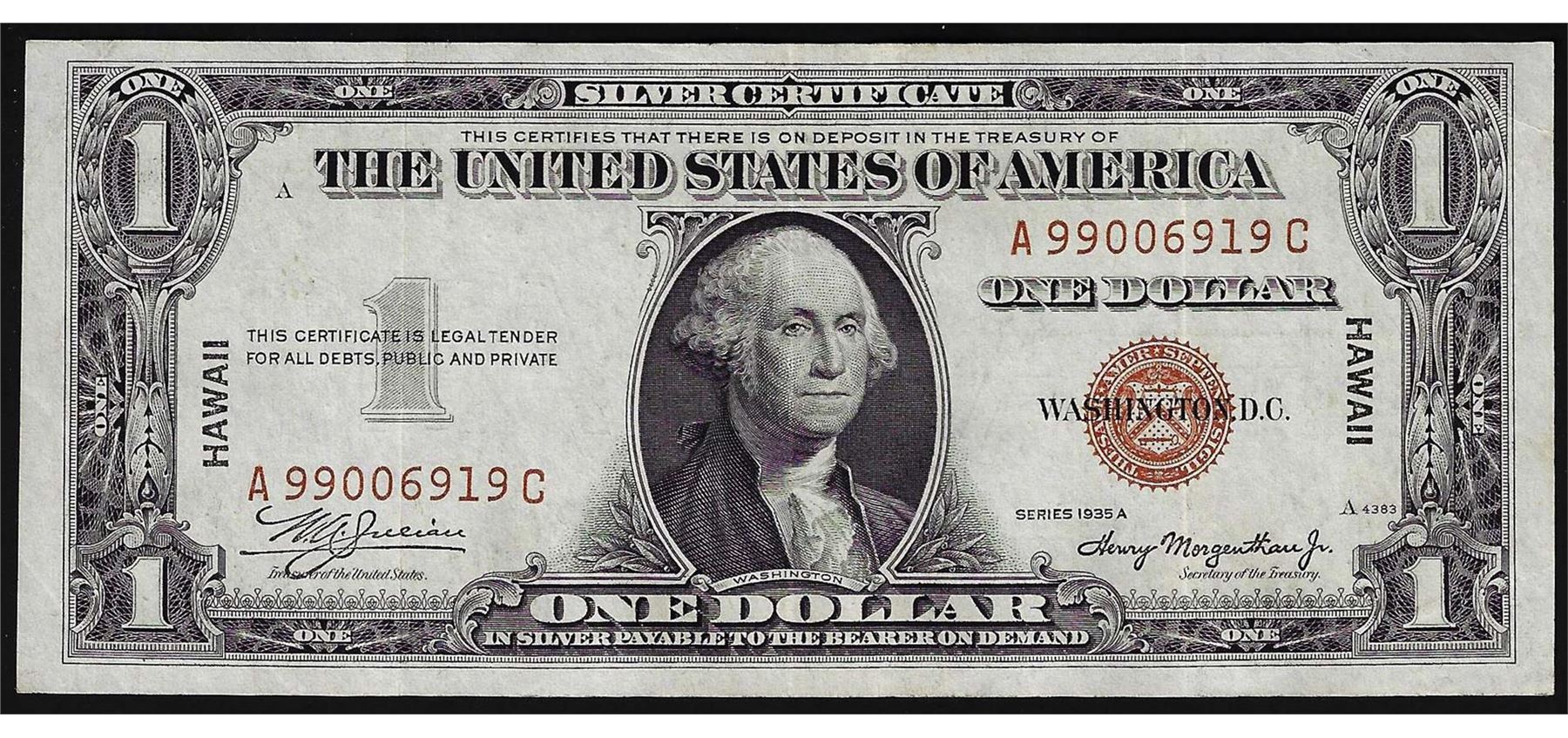 One 1935A $1 Silver Certificate WWII Emergency Hawaii Note.