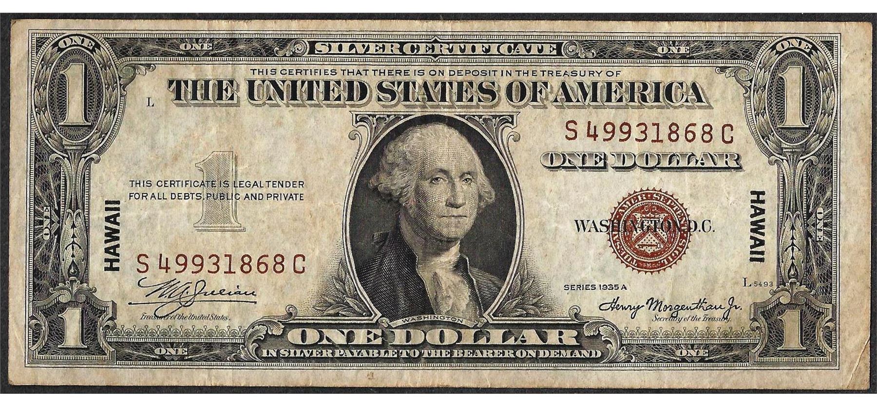 One 1935A $1 Silver Certificate WWII Emergency Hawaii Note.