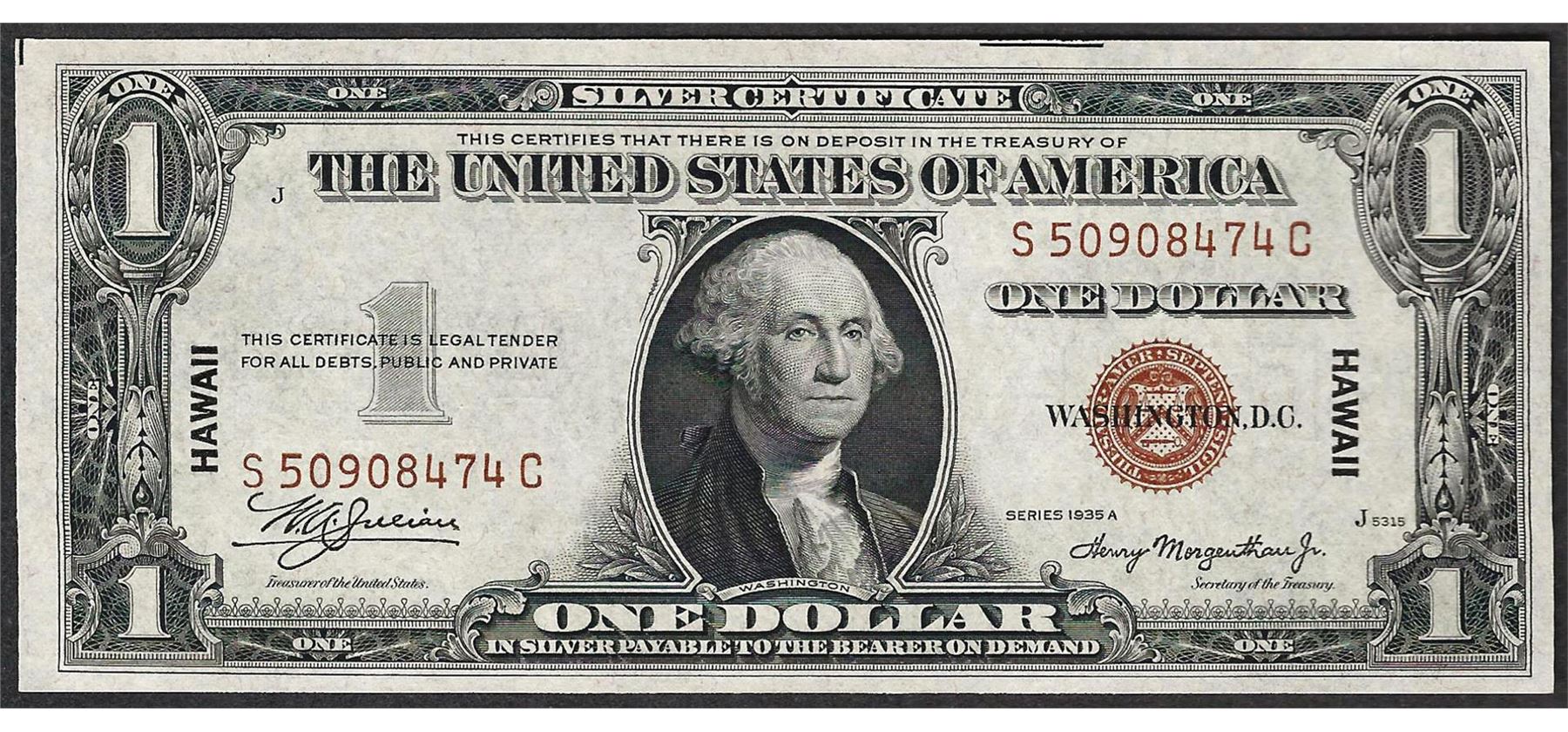 One 1935A $1 Silver Certificate WWII Emergency Hawaii Note.
