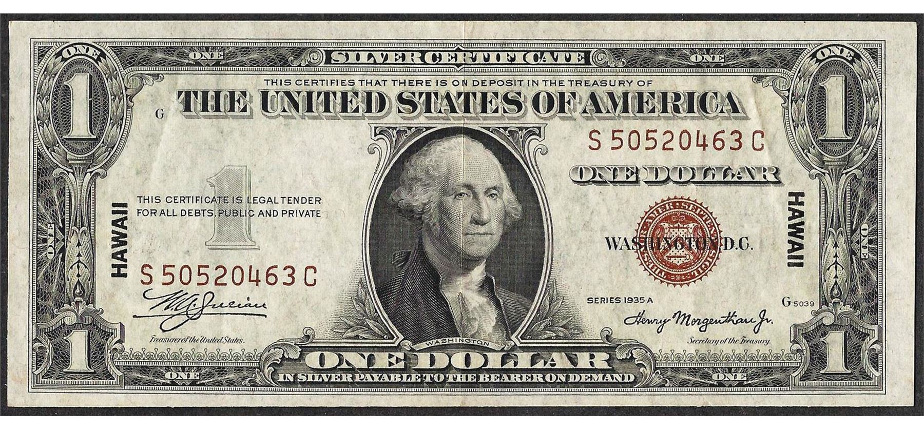 One 1935A $1 Silver Certificate WWII Emergency Hawaii Note.
