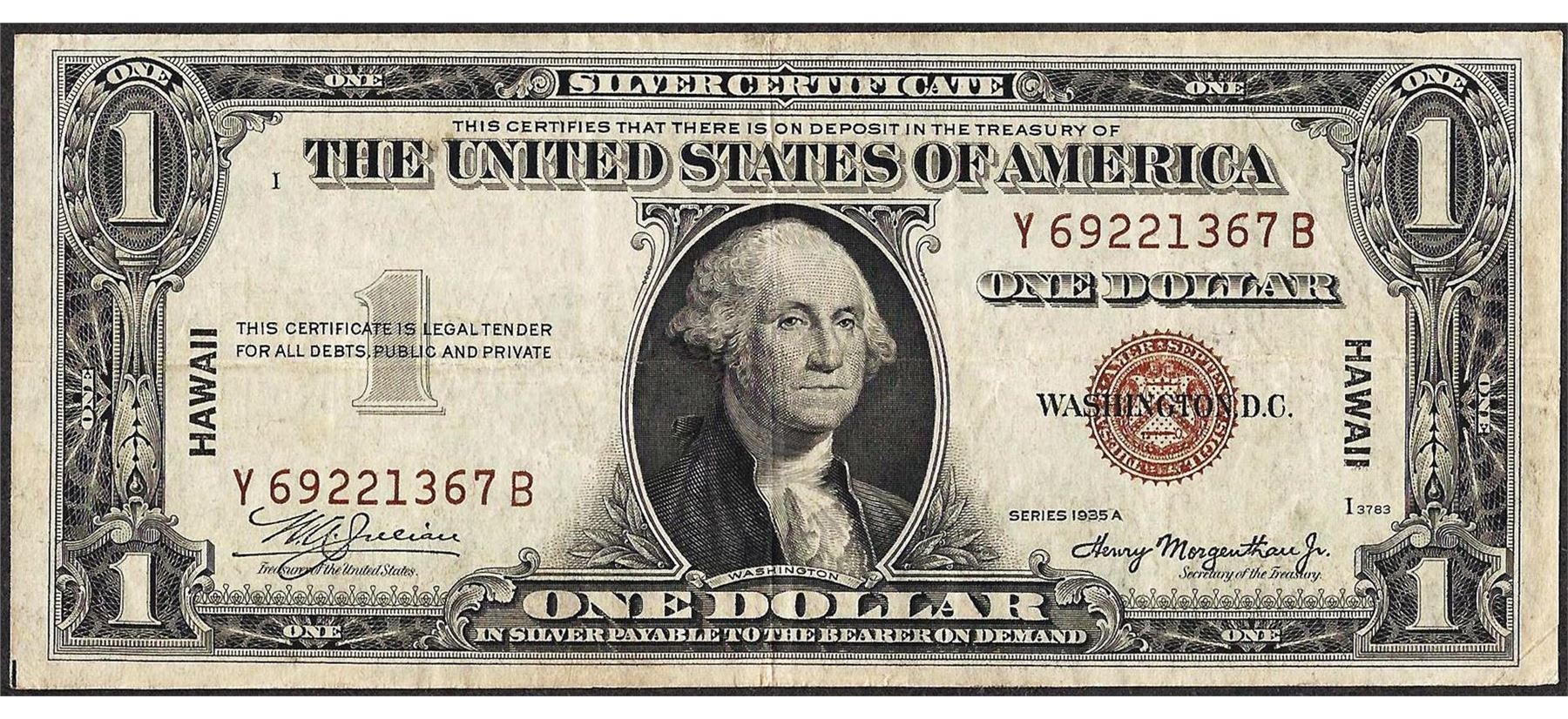One 1935A $1 Silver Certificate WWII Emergency Hawaii Note.