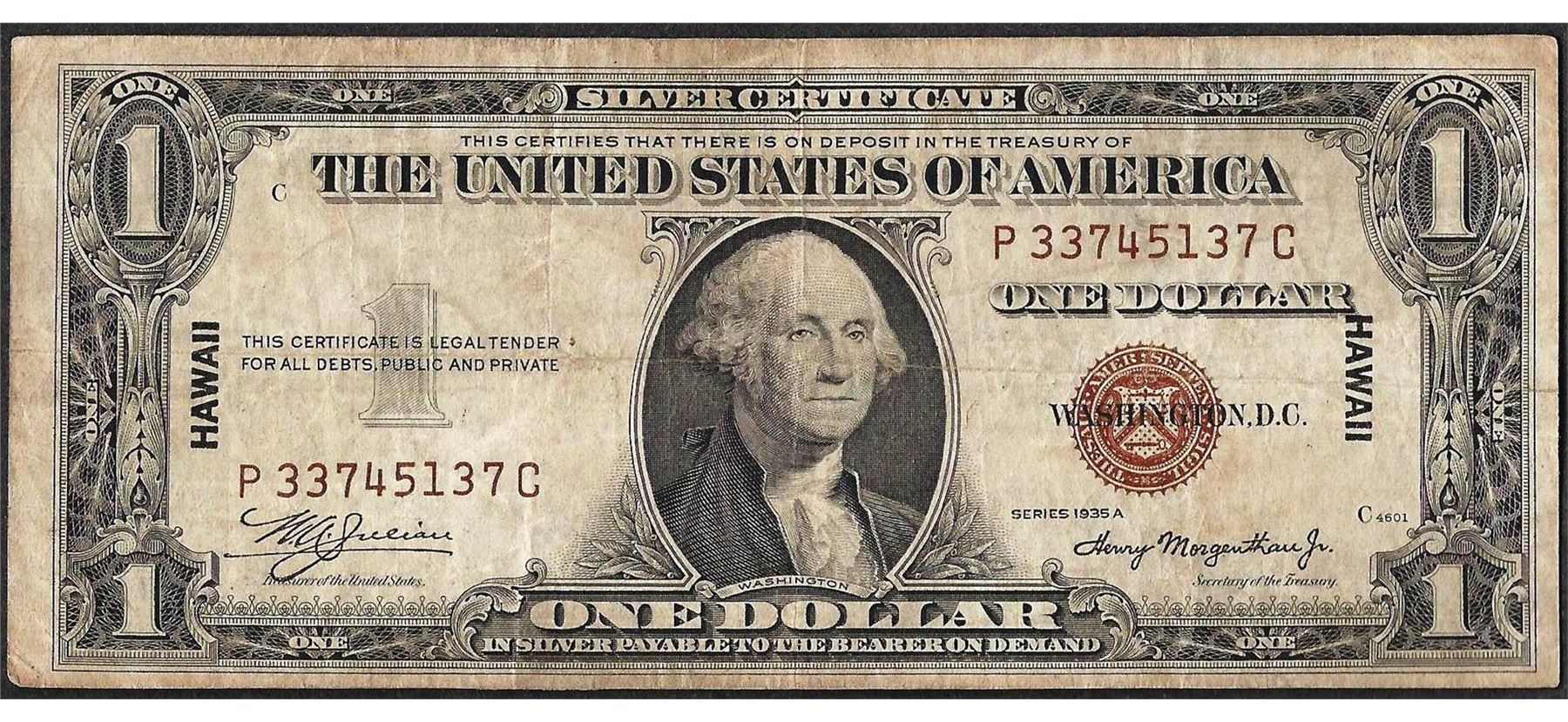 One 1935A $1 Silver Certificate WWII Emergency Hawaii Note.