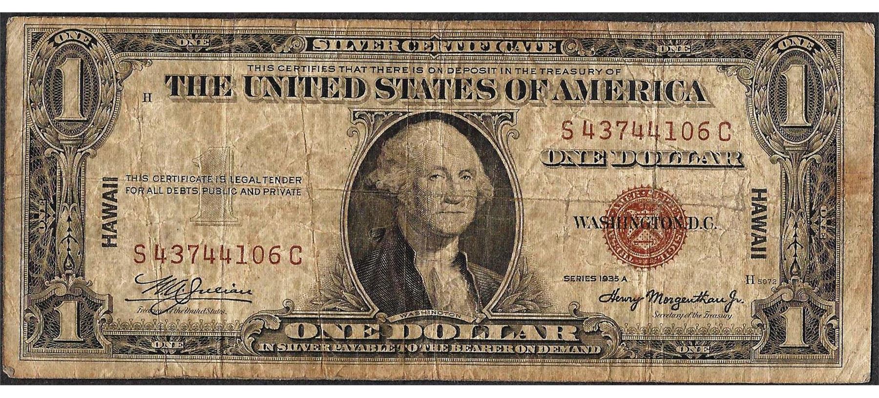 One 1935A $1 Silver Certificate WWII Emergency Hawaii Note.