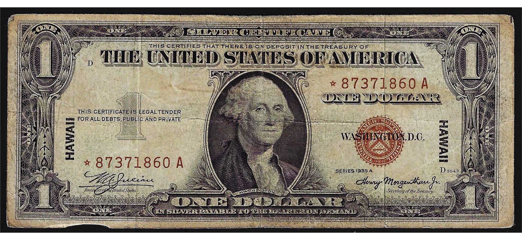 One 1935A $1 Silver Certificate WWII Emergency Hawaii STAR Note.