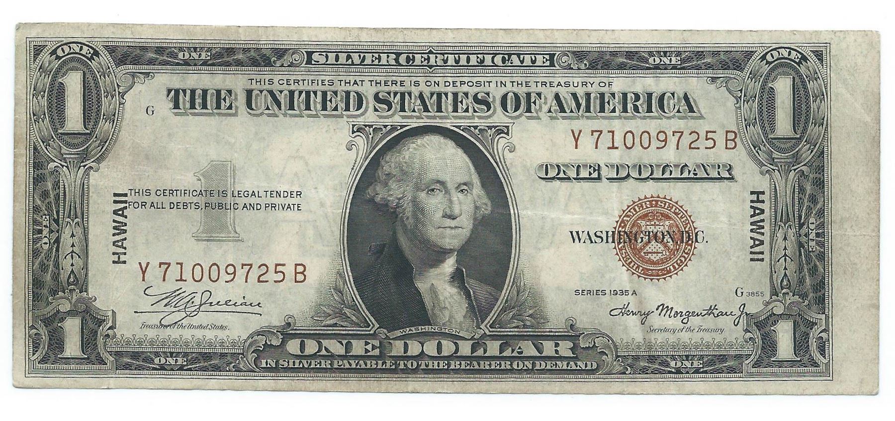 One 1935A $1 Silver Certificate WWII Hawaii Emergency Note