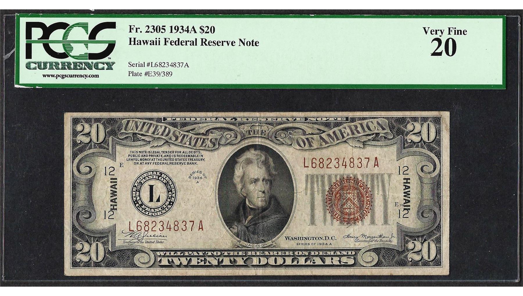 1935A $20 Hawaii Federal Reserve WWII Emergency Note PCGS Very Fine 20