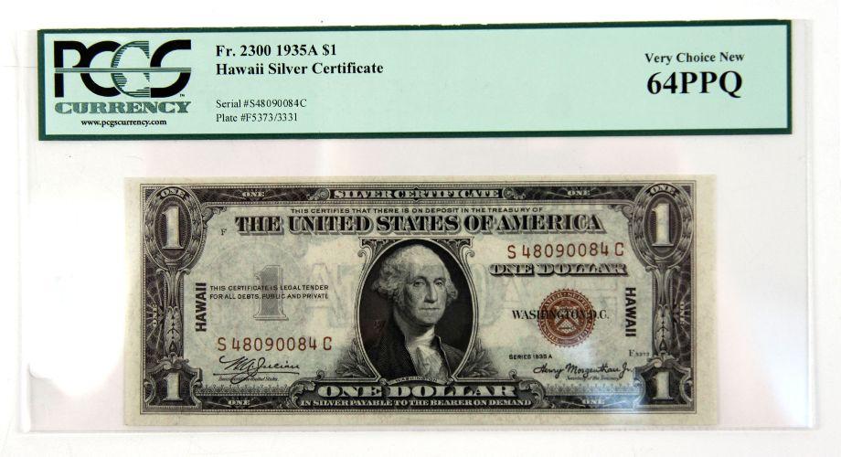 PCGS graded 64 PPQ $1 US Hawaii WWII Emergency note. Serial #S48090084C. Plate # F5373/3331.