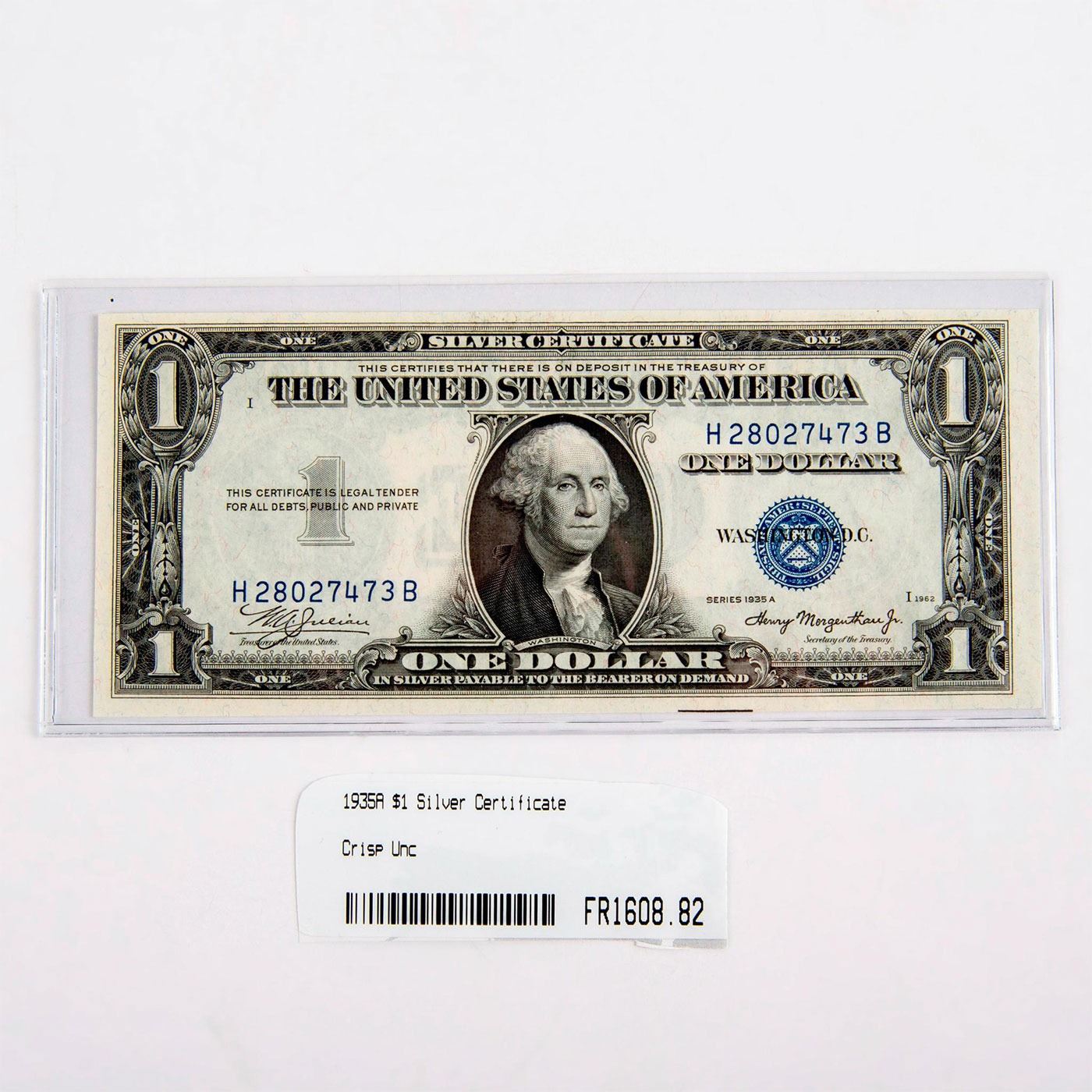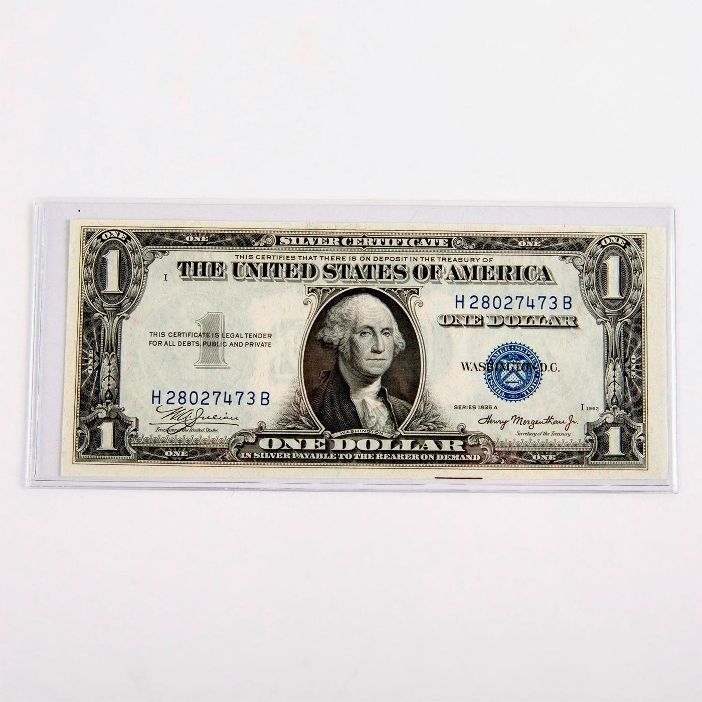 Crisp Uncirculated. Serial Number H28027473B. Small-size $1 Silver Certificates were issued with series dates of 1928, 1934, 1935, and 1957. Silver Certificates, with their distinctive blue Treasury seals and serial numbers, are among the most sought-after U.S. currency notes. Once redeemable for silver coin or bullion on demand however, these notes and the redemption option were discontinued by Act of Congress in 1963. #Numismatists #coin #currency #UScurrencynote