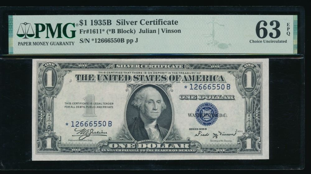 One 1935B $1 STAR Silver Certificate PMG 63EPQ.