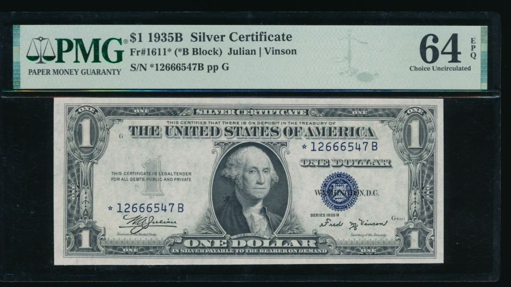 One 1935B $1 STAR Silver Certificate PMG 64EPQ.