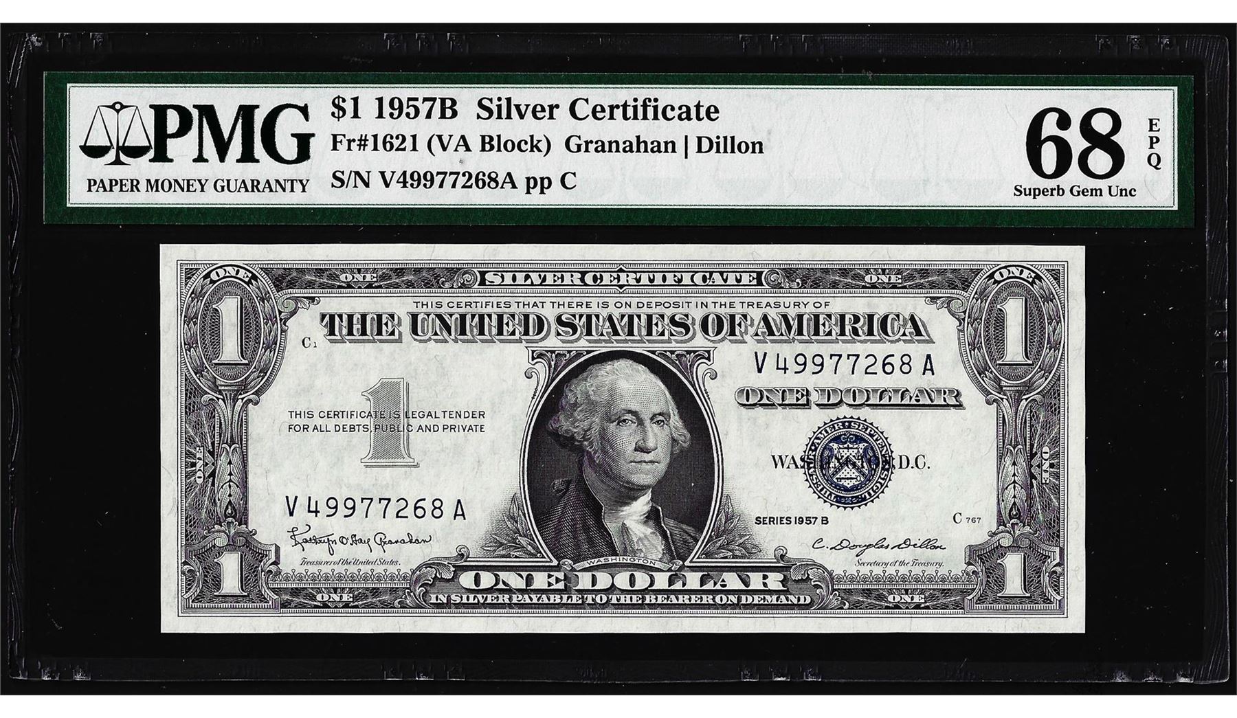 One 1935B $1 Silver Certificate Note Fr.1611 PMG Superb Gem Uncirculated 68EPQ. PMG Certified.