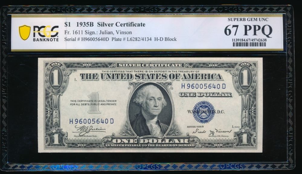 One 1935B $1 Silver Certificate PCGS 67PPQ.