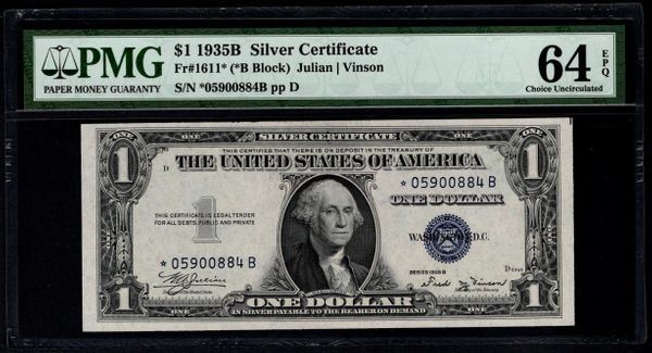 One 1935B $1 Silver Certificate STAR Note PMG 64EPQ.