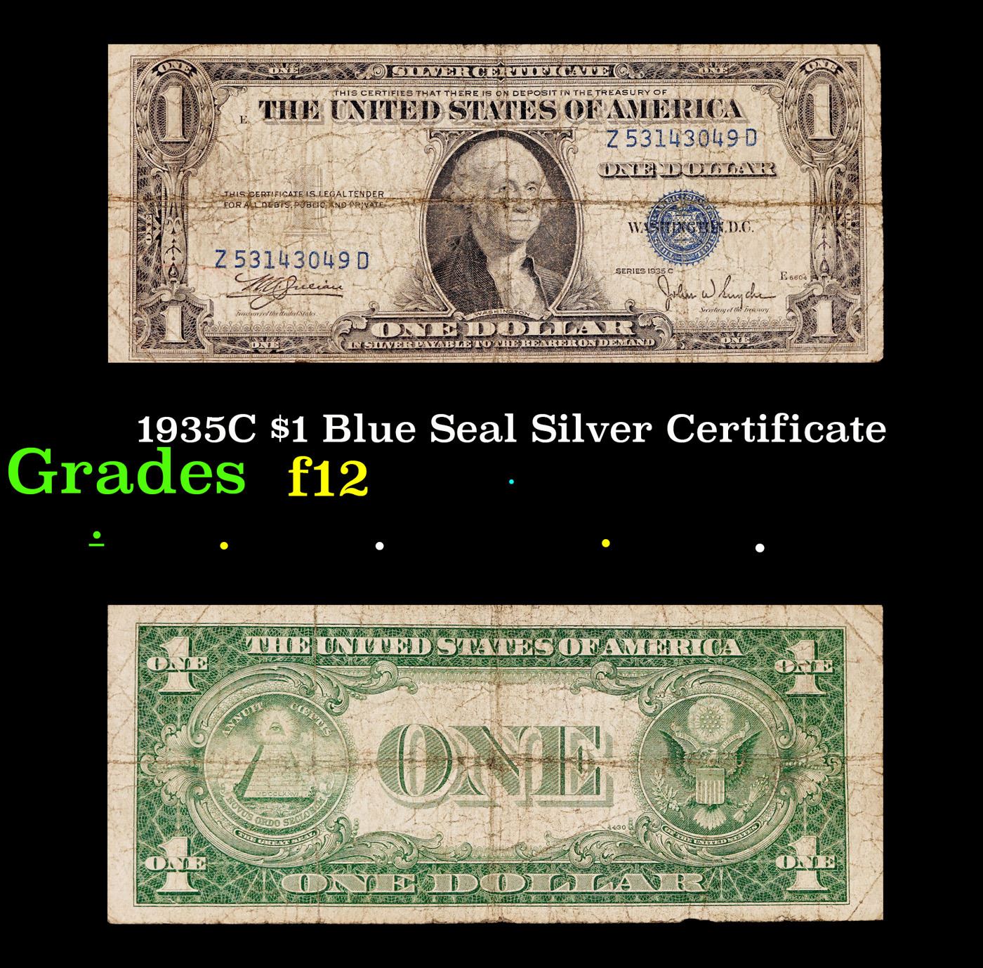 1935C $1 Blue Seal Silver Certificate Grades f, fine