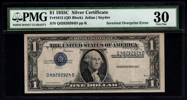 One 1935C $1 Silver Certificate ERROR Note PMG 30.